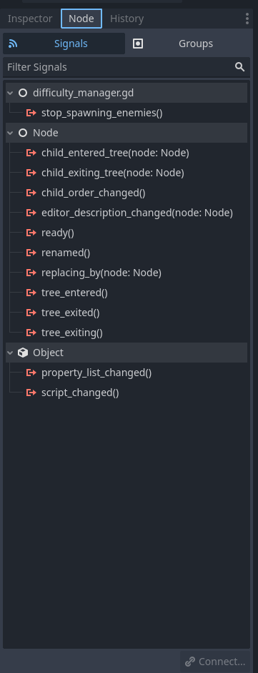There were a few things that I found were more attached to the engine than to the code and these might be areas of improvement for next iterations of Godot however, I think being able to write each and every functionality of the engine in the code is going to be impossible for game engines as they use several different types of assets and inputs that need to be handled at the level of the engine. One example of such an input is the ‘signals’. Signals are feedbacks that are sent by any node in Godot whenever some pre-defined action takes places (collision to other nodes, collision with mouse etc.). Functions can then be written in GDScript which get triggered whenever the signal is received. The signals need to be set using Godot’s interface and then imported into the code. This makes the Godot code deeply coupled with the engine.