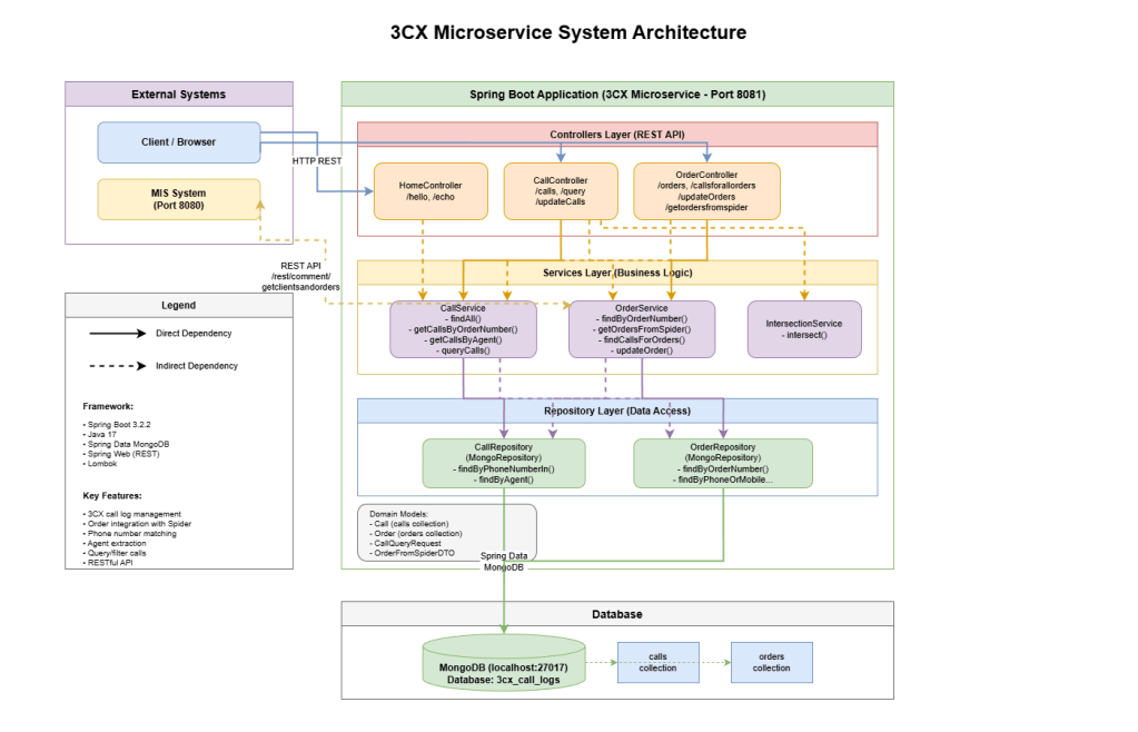 A springboot microservice was made which was supposed to get call logs from 3cx and provide API endpoints for querying them. The data from 3cx was streamed to a mongodb database every day at a particular time. This data was joined with purchase order data from the parent company’s MIS and stored in the mongodb. The API provided various querying methods in order to prepare a report on the parent company’s MIS. Following is the system architecture diagram of the same.